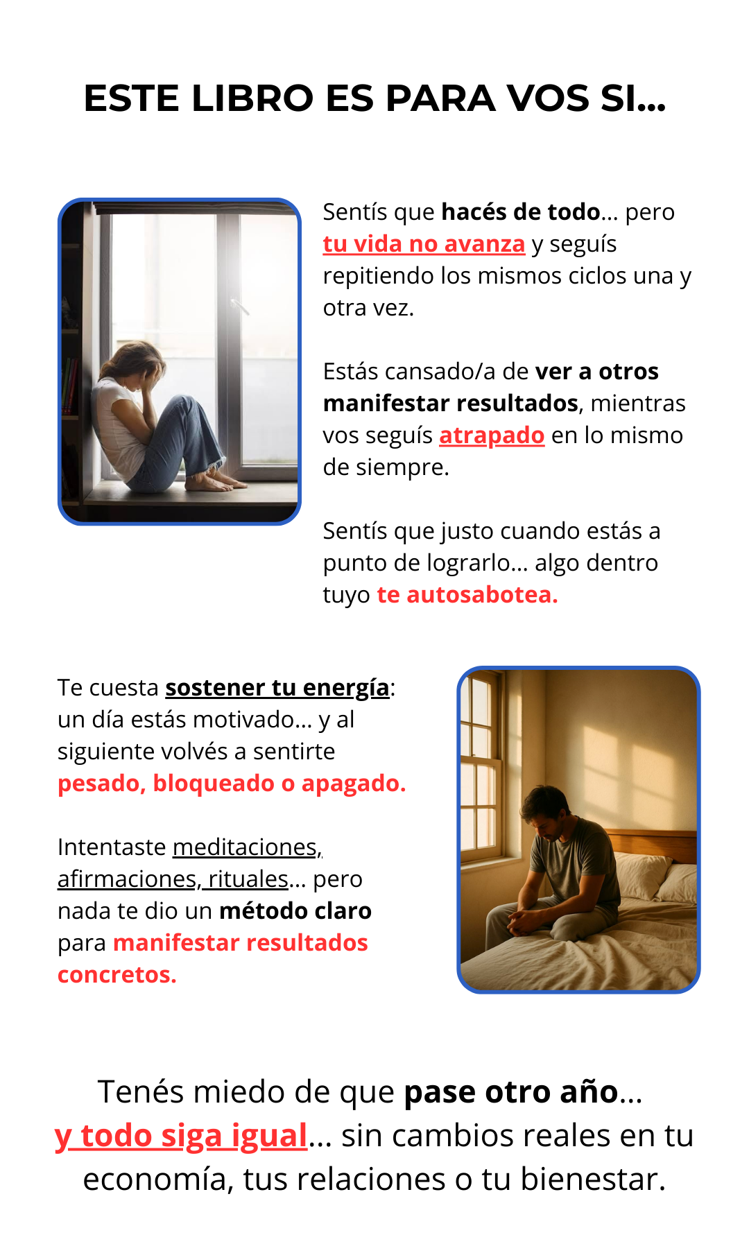 Sí. La mayoría de las técnicas fallan porque sólo trabajan la mente consciente. Este método reprograma el subconsciente y campo energético, que es donde realmente se origina tu realidad. Ideal para quienes sienten que “hicieron de todo” y aún no logran avanzar.