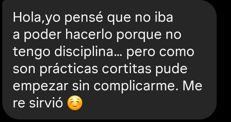 Entre 5 y 10 minutos diarios. El proceso está pensado para integrarse fácilmente a tus rutinas sin esfuerzo, sin ejercicios eternos y sin “disciplinas imposibles”.